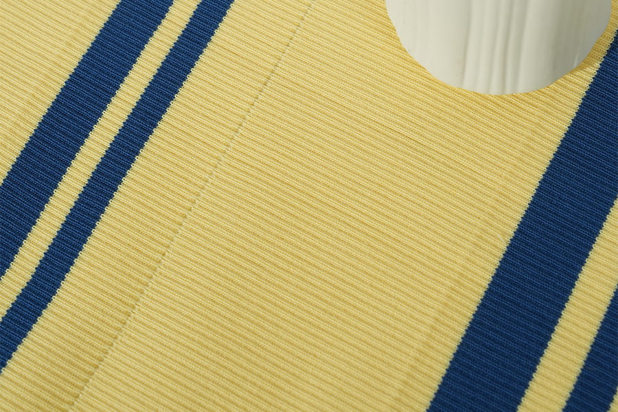 Ventajas: Una de las ventajas más llamativas del tejido acanalado de poliéster radica en su resistencia y durabilidad incomparables. Las fibras de poliéster exhiben una resistencia excepcional al estiramiento, el encogimiento y la abrasión, lo que garantiza que las prendas fabricadas con este tejido conserven su forma e integridad, incluso después de un uso y lavado intensivos. Esta durabilidad se traduce en ahorros de costos a largo plazo para los consumidores, ya que las prendas de punto acanalado de poliéster duran más que sus contrapartes, manteniendo su apariencia y rendimiento durante una vida útil prolongada.